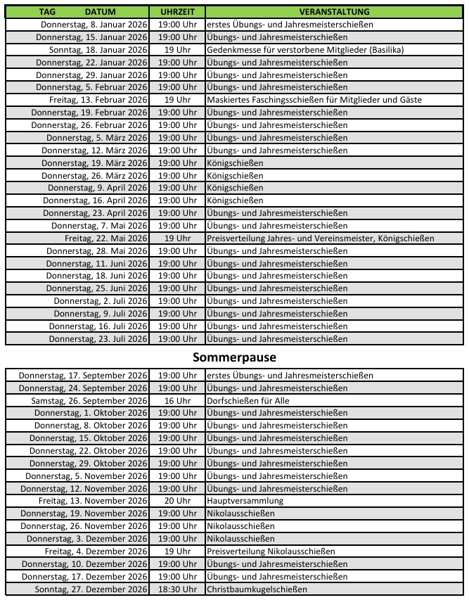 Vorläufiger Terminplan 2026 (Änderungen vorbehalten)